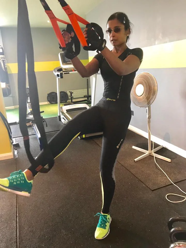 Pistol Squats on the TRX in my SKINS DNAmic Compression Gear